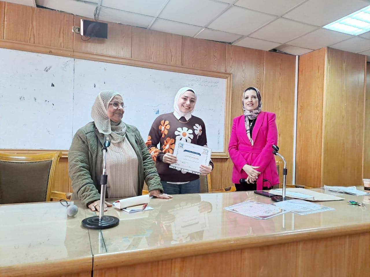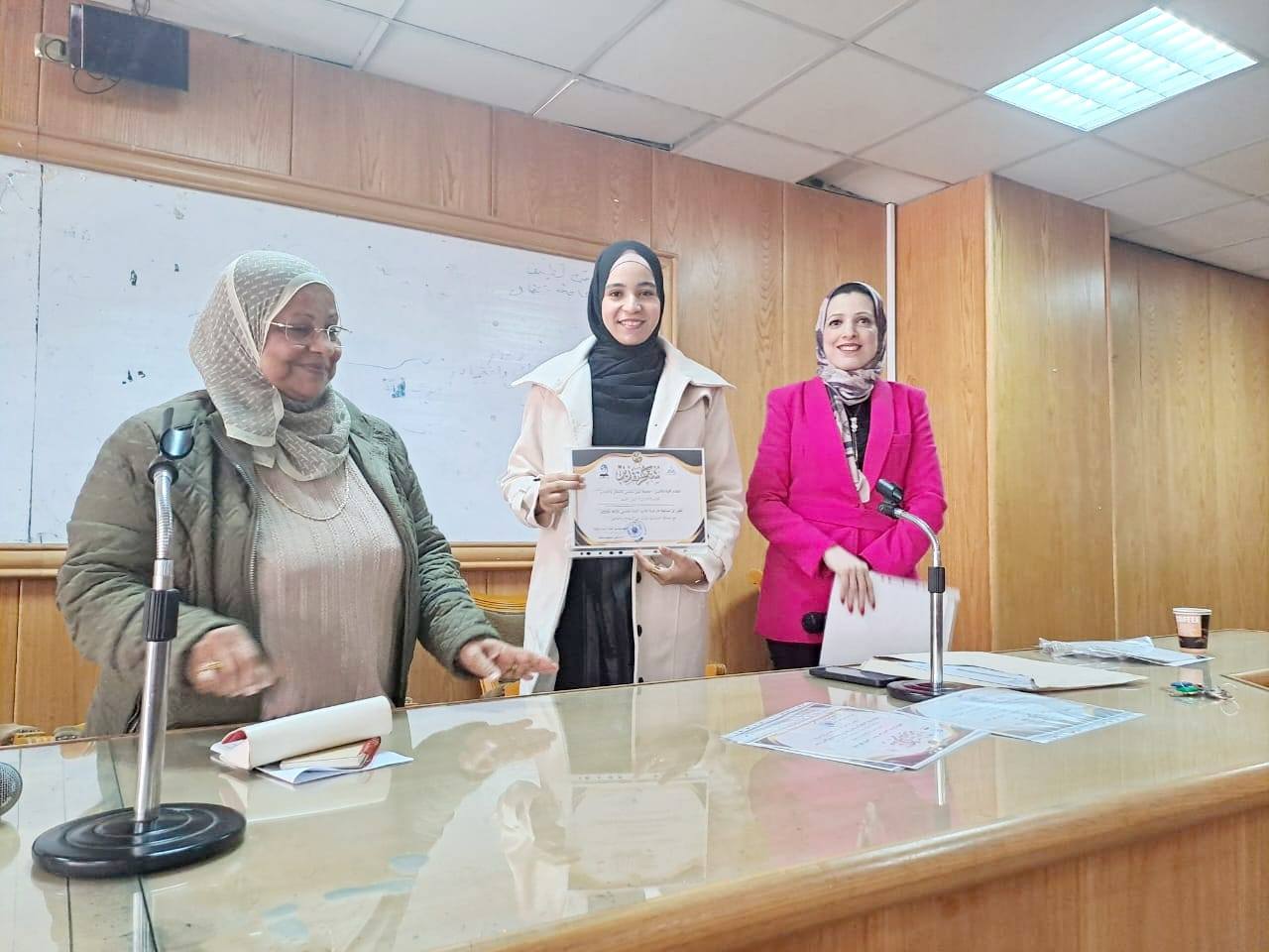الفائزة: الطالبة فاطمة محمد رمضان بقسم اللغة العربية (اللغة الثانية: الألمانية).